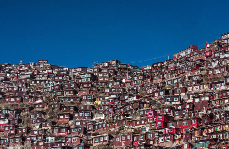 Read moreThis picture taken on December 8, 2015 shows homes of Buddhist nuns and monks from the Larung Gar Buddhist Institute in Sertar county (known as Seda in Chinese) in the remote Garze Tibetan Autonomous Prefecture in southwest China's Sichuan province. The monastery founded in 1980 has become one of the largest and most influential centres for the study of Buddhism with up to 40,000 monks and nuns in residence for parts of the year. #