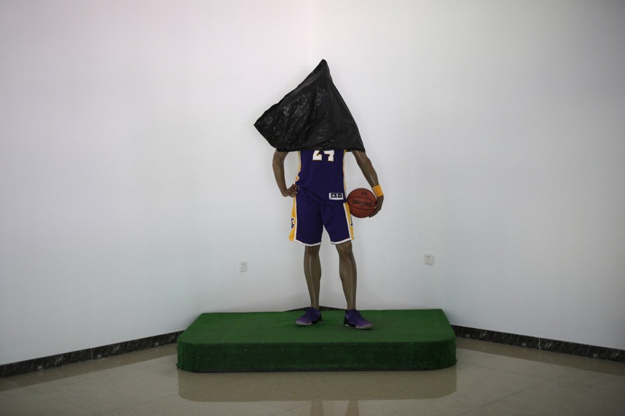 Read moreA wax figure of Los Angeles Lakers forward Kobe Bryant with its head covered to protect it from dust, at Zhaolin Park in the northern city of Harbin, Heilongjiang province, on January 6, 2016. #