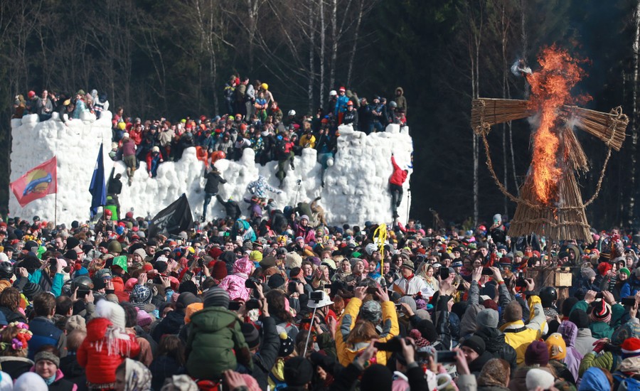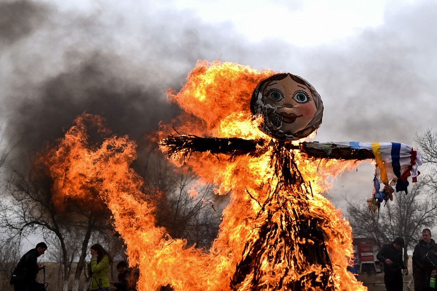 Read morePeople burn a straw-wood-and-cloth effigy representing Mother Winter on March 13, 2016, close to the city of Baikonur in celebration of Maslenitsa, a farewell ceremony to winter. #