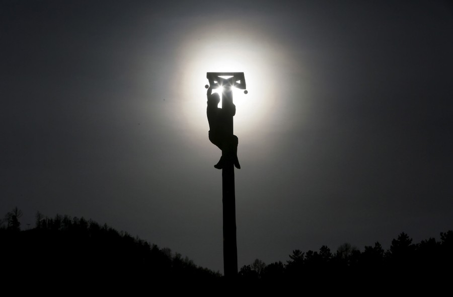 Read moreA man climbs up a 9-meter-high wooden pole to get a prize during Maslenitsa celebrations at the Bobrovy Log ski resort in the suburbs of Krasnoyarsk, Siberia, Russia, on March 13, 2016. #