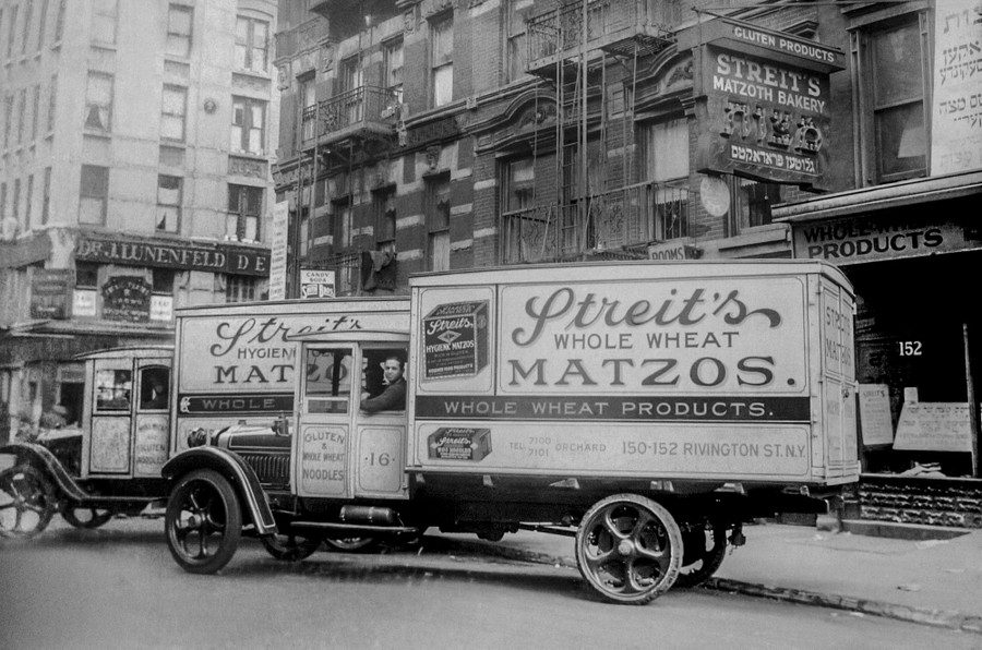 Read moreA Streit's truck outside the Rivington Street factory, circa 1935. Initially, Streit's operated on the ground floor of the building at 150 Rivington Street, with the floors above containing tenement apartments. Streit's would later purchase all four buildings at 148-154 Rivington Street, devoting the entire space to matzo production. #