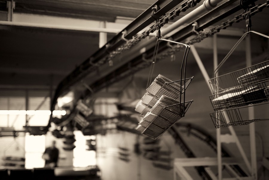 Read moreIn the 1920s, when the factory only occupied one floor of the building, transporting matzo for packaging was simple. But by the late 1930s, the factory operated across all five floors, necessitating a system to transport matzo from the ovens to the packaging room. This system of Carnegie Steel conveyors, pictured in 2015, was developed to move and cool the matzo before it was packed. #