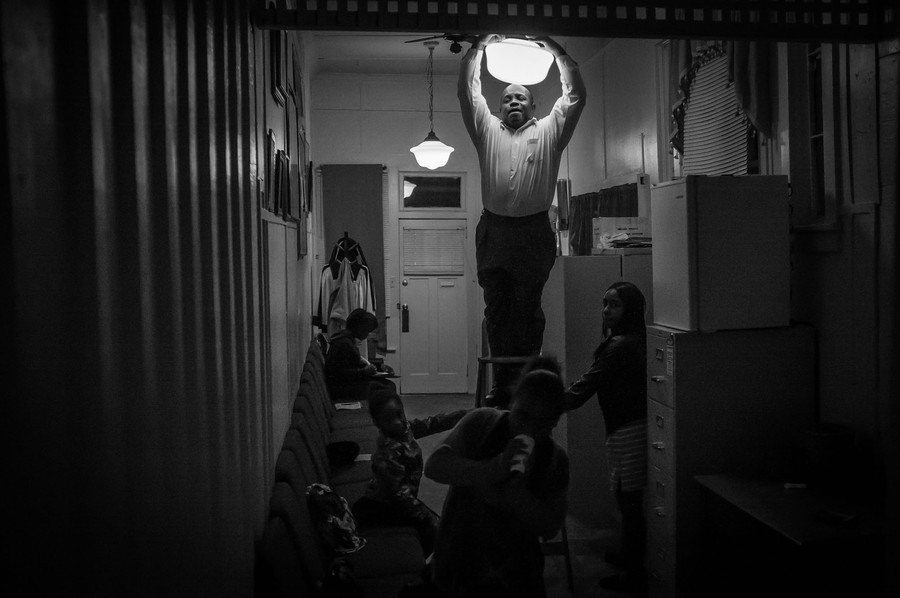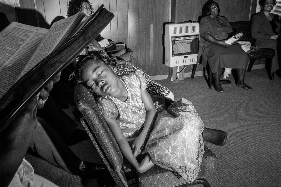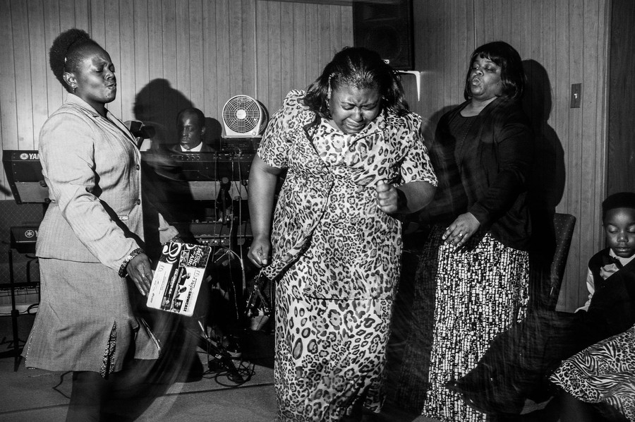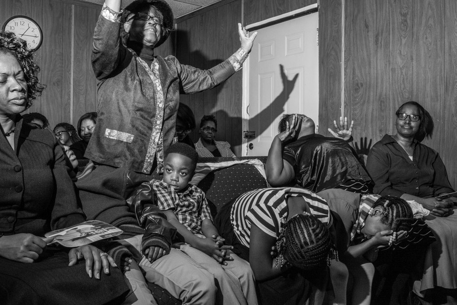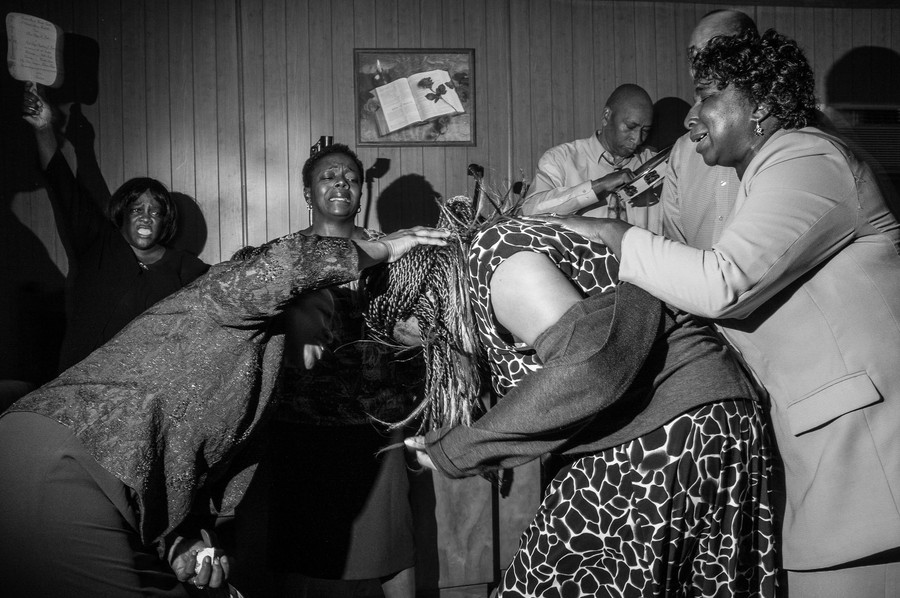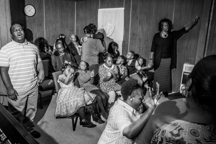 The space, with its wood paneling, fluorescent lighting and lack of windows, more resembled a waiting room than a house of god. “As a kid who grew up as a sometimes Methodist in the South, this service was completely foreign to me,” he said of the roughly 30-person congregation. “No holds barred, they are there to connect, refresh, repent, worship, and love one another.” He took 400 photographs during his first visit, afraid he would not be invited back. Luckily, he was.