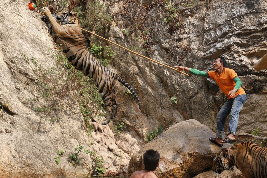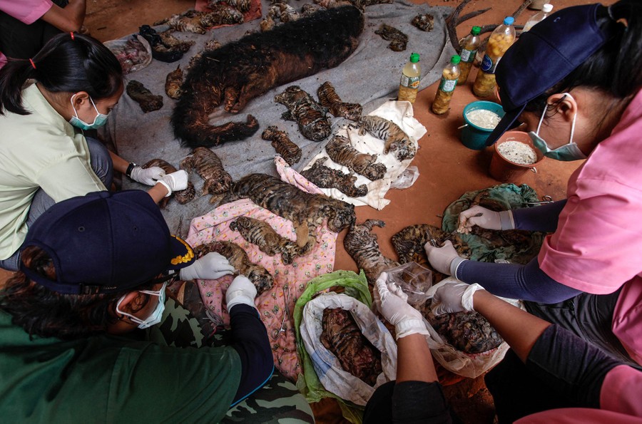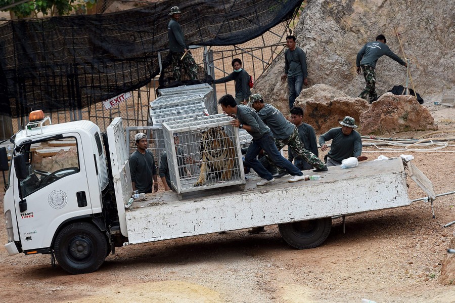 In Kanchanaburi Province, Thailand, a Buddhist temple known as the Tiger Temple, has become a popular tourist attraction—and a source of controversy. For years, accusations of illegal breeding, inadequate care, and animal trafficking have hounded the temple, which housed as many as 140 of the big cats. This week, Thai wildlife officials armed with a court order entered the temple to remove the tigers and investigate potential criminal misconduct. The carcasses of at least 40 undeclared tiger cubs were discovered in a freezer on the property.