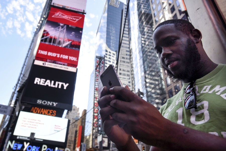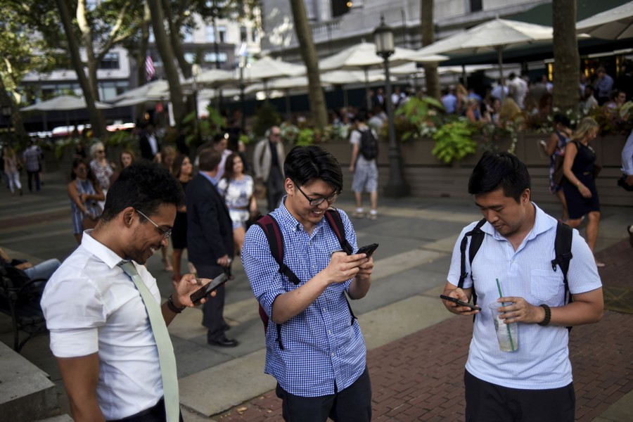 Read moreA woman uses a portable battery pack to charge her phone while playing the augmented reality mobile game Pokémon Go by Nintendo in New York City, July 11, 2016. Players must keep the game open and their phones' GPS running to play the game, causing battery life to dwindle. #