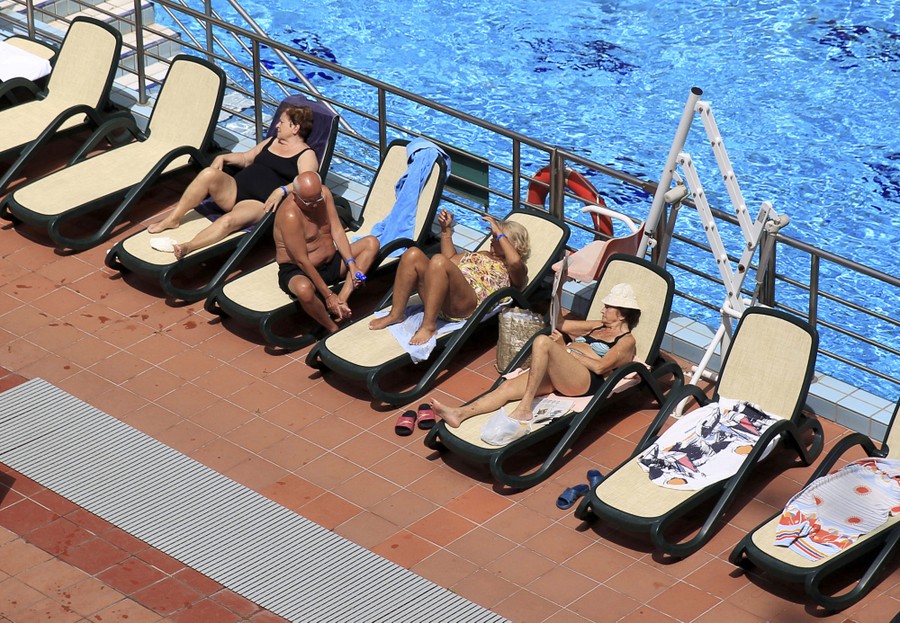 Read morePeople sunbathe at the Lukacs Bath in Budapest, Hungary, on June 28, 2016. #