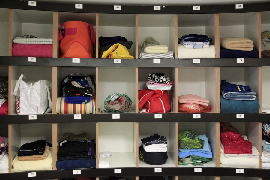 Read moreTowels and swimsuits are seen on shelves at the Lukacs Bath in Budapest, Hungary, on July 6, 2016. #