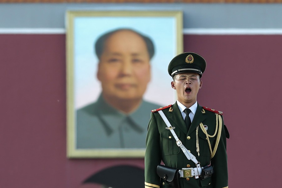 Read moreThis photo taken on July 13, 2016 shows a paramilitary policeman standing guard in Beijing's Tiananmen Square, near the portrait of late communist leader Mao Zedong. #