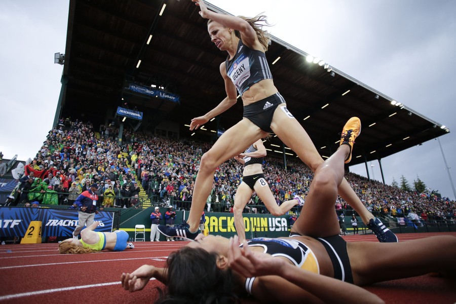 Read moreMorgan Uceny, top, steps over Brenda Martinez at the finish line in the finals of the women's 1500-meter run at the U.S. Olympic Track and Field Trials, Sunday, July 10, 2016, in Eugene, Oregon. #
