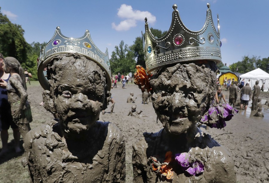 Read moreAiden Haas, left, and Lilli Alcala pose after being crowned Mud King and Mud Queen at the 29th annual Mud Day, Tuesday, July 12, 2016 in Westland, Michigan, The event, open to children 12 and younger, was at the Hines Park-Nankin Mills Area west of Detroit. Children were able to slosh around in the pit while participating in mud limbo, wheelbarrow races and other free activities. #