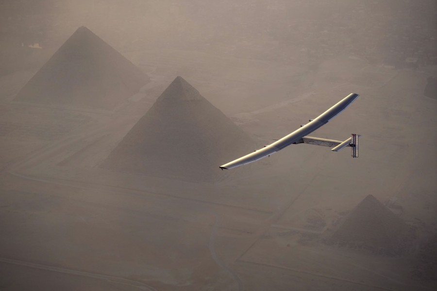 Read moreThis handout photo released by Solar Impulse 2 shows the solar powered plane, piloted by Swiss pioneer André Borschberg, during the flyover of the pyramids of Giza, July 13, 2016 prior to landing in Cairo, Egypt. The 16th leg of the round-the-world-trip from Seville in Spain covered a distance of 3,700 kilometers and took almost 49 hours. The Solar Impulse 2 landed in Cairo on July 13, 2016 for the penultimate stop in the solar-powered plane's world tour, two days after setting off from Spain. #