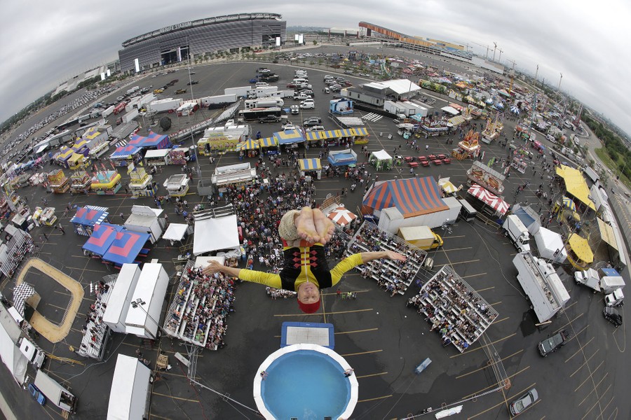Read moreDan Poor, of Jacksonville, Florida, dives from an 85-foot tall platform into a 9.5-foot pool during a performance by the Sinbad High Dive Show at the State Fair Meadowlands carnival, Saturday, July 9, 2016, in East Rutherford, New Jersey. #
