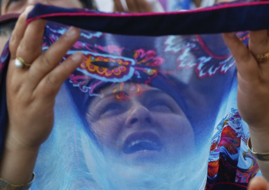 Read moreA Kashmiri Muslim woman, seen through her veil, raises her hands in prayers as a head priest displays a relic believed to be of the prophet Muhammad at the Hazratbal shrine in Srinagar, Indian-controlled Kashmir, on June 27, 2016. #