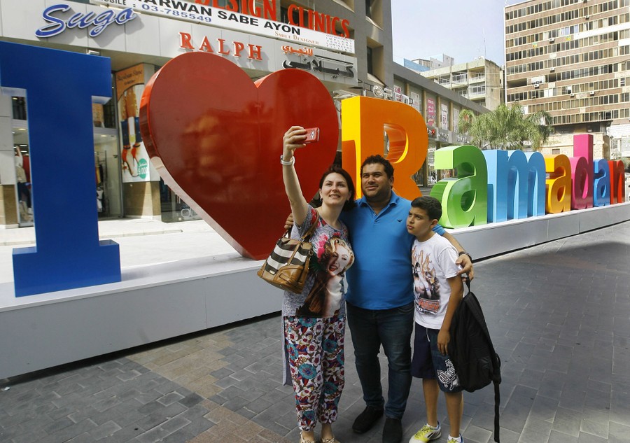 Read moreA Lebanese family takes a selfie in front of street decorations in preparation for the Islamic holy month of Ramadan, in the southern port city of Sidon, Lebanon, on June 4, 2016. #