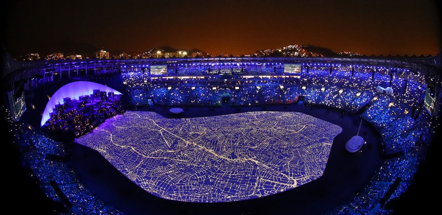 Read moreProjections cover the floor of Maracana Stadium as performers take part in the Olympic Opening Ceremony. #