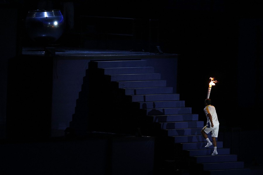 Read moreFormer Brazilian athlete Vanderlei Cordeiro de Lima climbs stairs to the Olympic cauldron with the Olympic torch in Rio de Janeiro on August 5, 2016. #