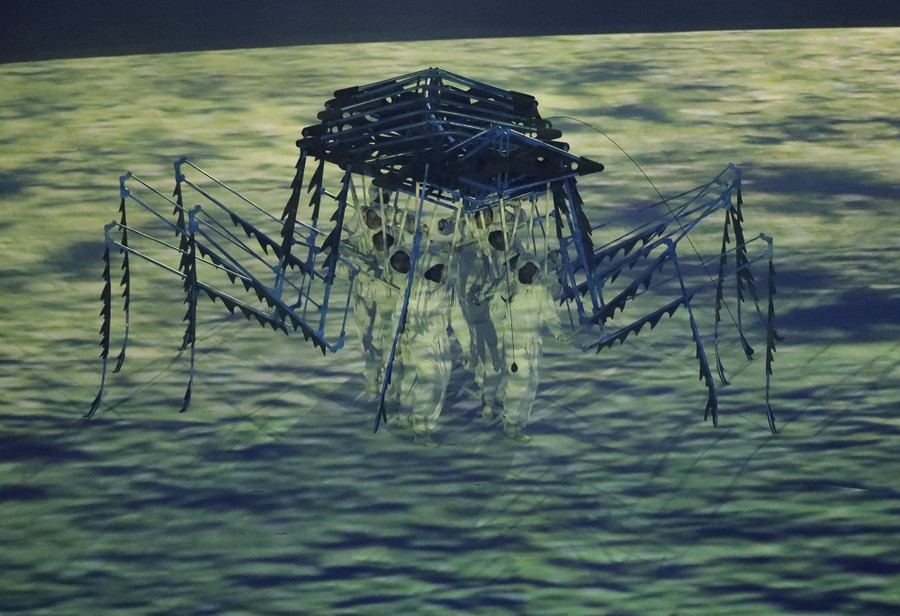 Read morePerformers manipulate a large insect puppet during the opening ceremony. #