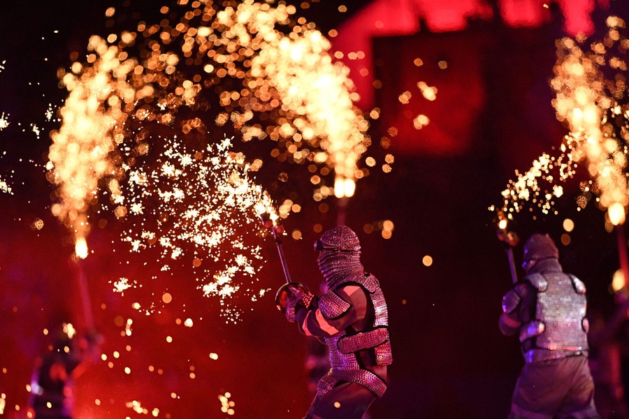 Read moreDancers fling sparks during the opening ceremony in Rio. #