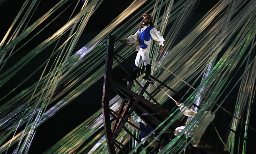 Read moreA performer portrays a Portuguese explorer on a ship during the Opening Ceremony. #