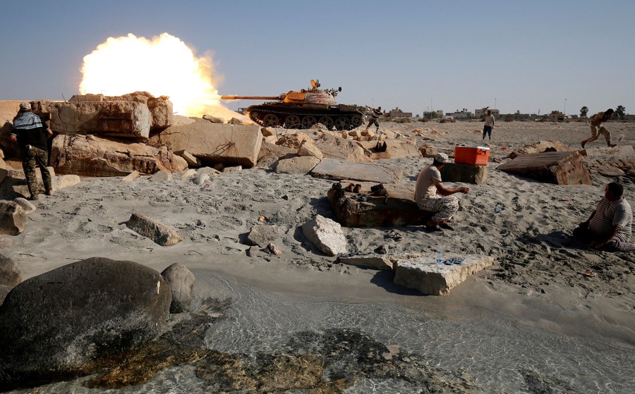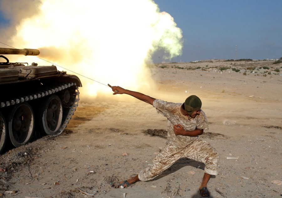 As my colleague Dominic Tierney points out, the United States has now picked a side in Libya’s civil war—the UN-backed, internationally recognized, Government of National Accord (GNA)—and has begun coordinated airstrikes against ISIS positions in Libya. However, ISIS and the GNA are only two of dozens of competing militias and groups involved in the chaotic struggle to gain control of Libya since the fall of Muammar Qaddafi in 2011. Reuters photographer Goran Tomasevic has spent much of the past two months in Libya with fighters loyal to the GNA, mostly brigades from Misrata, as they waged ground battles with ISIS in the town of Sirte. Tomasevic: "When everyone shouts 'Allahu Akbar' (God is Great) I know that a tank or a cannon will fire."