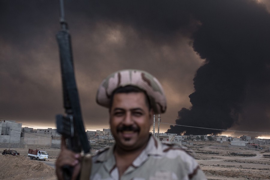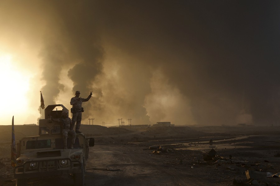 Thousands of Iraqi and Kurdish troops, supported by the United States, France, and Britain, are now in the early stages of a massive operation to retake the Iraq's second largest city of Mosul from ISIS militants. Advancing on multiple fronts, the Iraqi assault has so far recaptured numerous outlying villages, but central Mosul still lies ahead. Members of the United Nations and others fear a major crisis may result as hundreds of thousands of civilians are driven from their homes by the war, while ISIS fighters have threatened to fight to the death. In villages already captured, booby traps are being discovered on roadsides, in the remaining buildings, and in networks of tunnels dug beneath them.