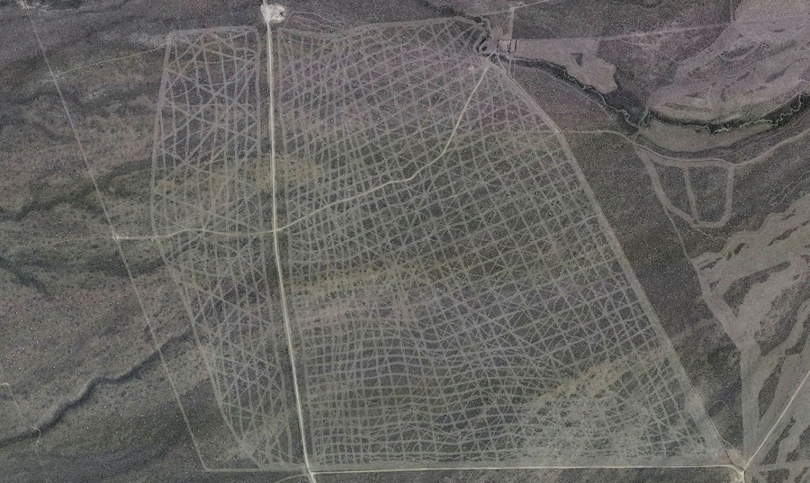 Read moreI really have no good what this is. If you have any idea, please let us know in the comments below. It's an area a bit less than one square mile, criss-crossed by numerous less-than-straight lines made by a vehicle clearing brush, and intersected by a couple of roads. In Elko County, Nevada. #