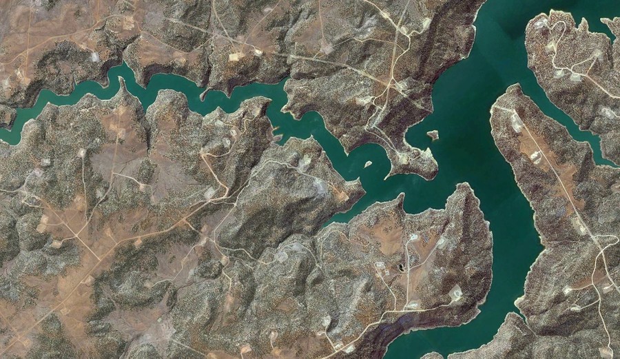 Read moreAccess roads and gravel platforms for oil pumpjacks dot the landscape around Navajo Lake, formed by Navajo Dam, in Rio Arriba County, New Mexico. #