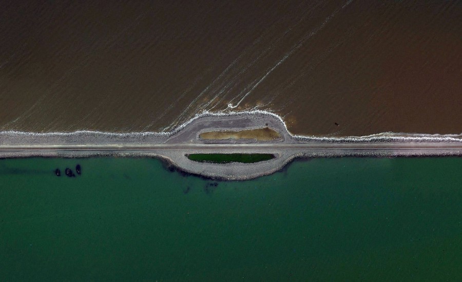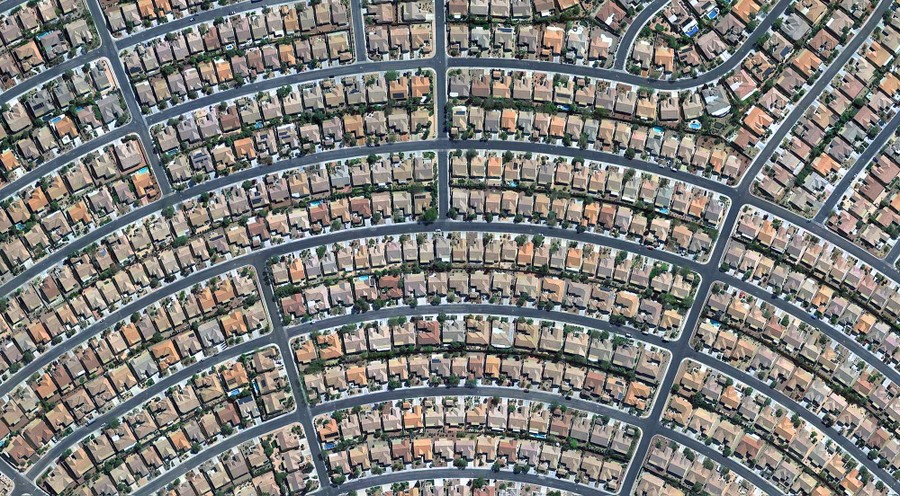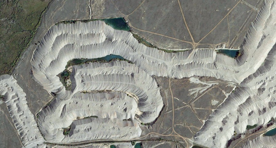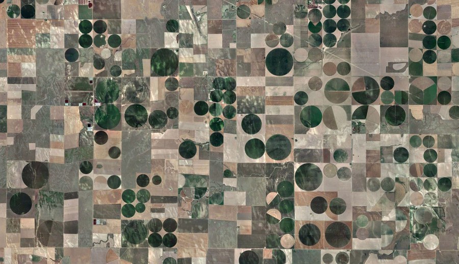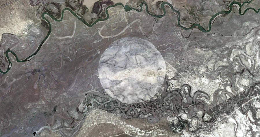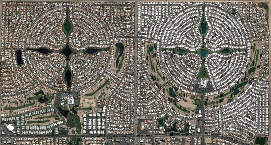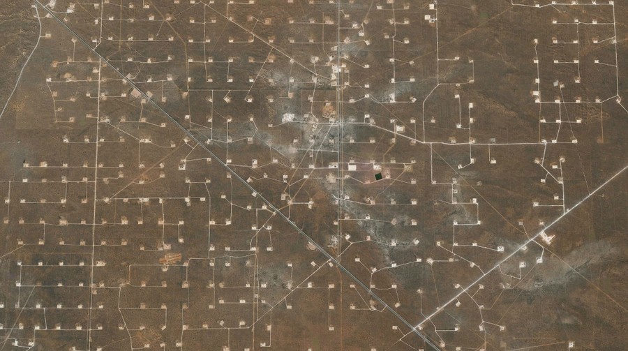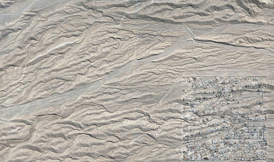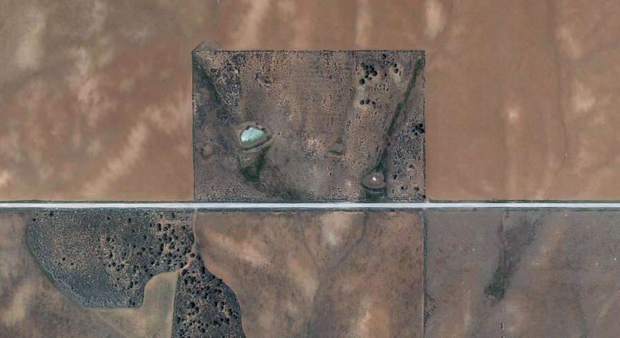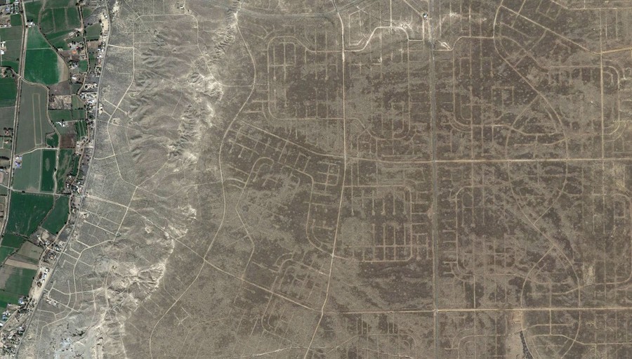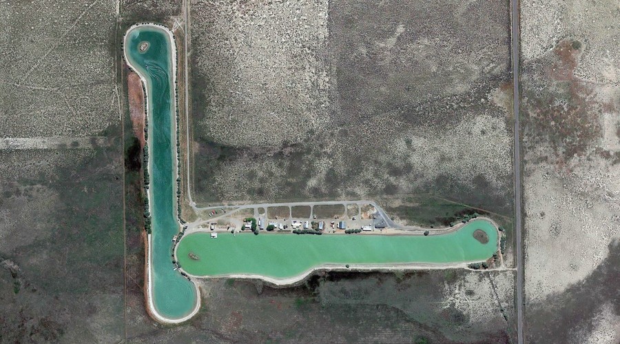 Read moreA small residential development with two tiny oblong lakes, near Rush Valley, Utah. Note the speedboat making waves at upper left. #