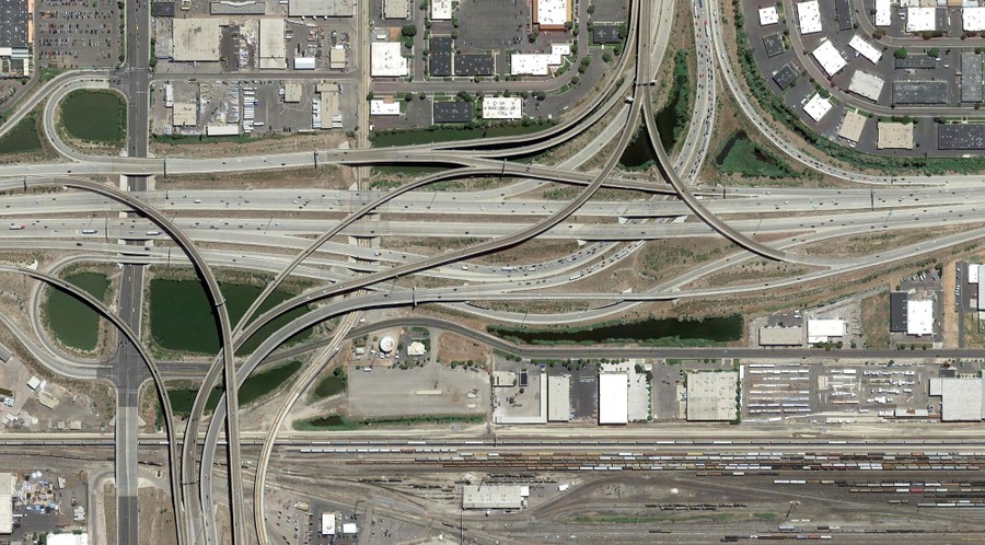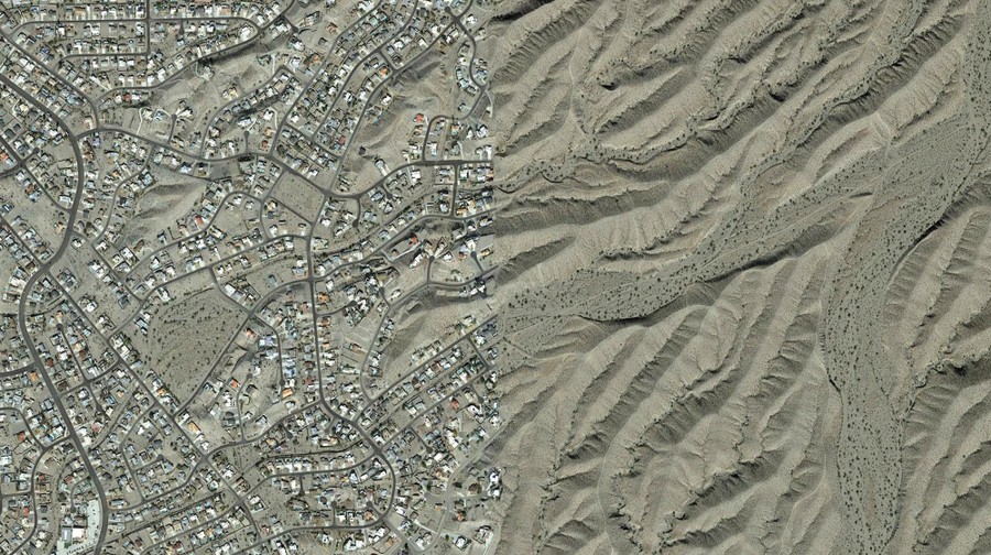 Humans have lived in what we now call the American Southwest for centuries, making a wide impact on the land, much of it visible from aerial and satellite photography. Nuclear detonations, housing subdivisions, oil exploration, hydroelectric facilities, solar power facilities, roads, mines, farms, ranches, cities, and towns have altered much of the land over the years. Over the past week, I took a virtual tour with Google Earth, and wanted to share some of these snapshots of the human landscape in Arizona, New Mexico, Colorado, Utah, and Nevada.
