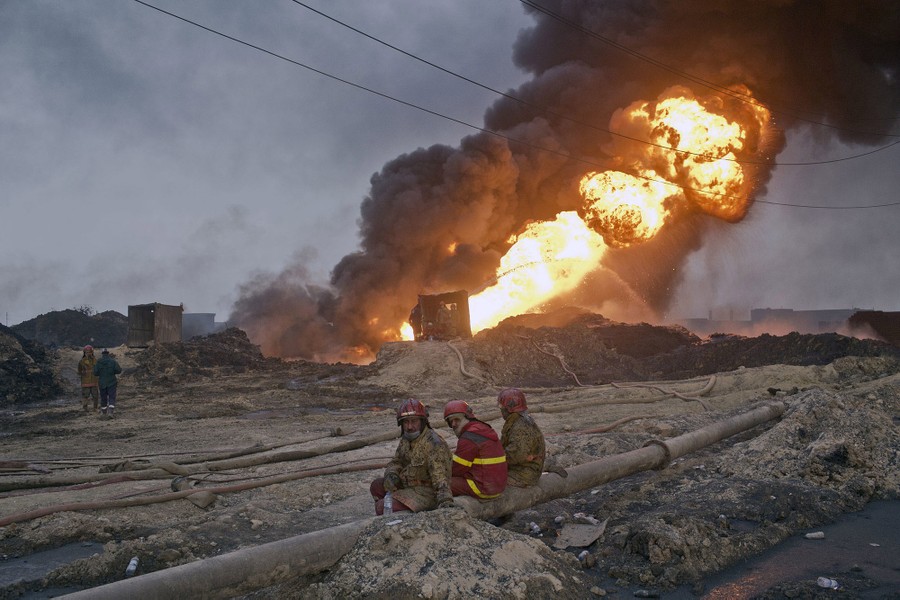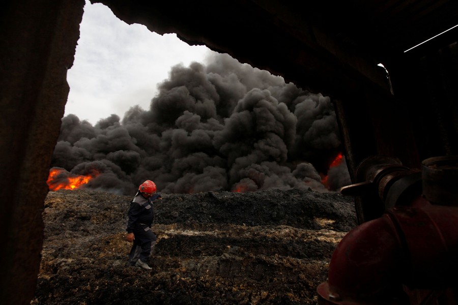 Read moreIn this photo taken on November 9, 2016, firefighters rest after trying to extinguish burning oil wells in Qayara, some 50 kilometers south of Mosul, Iraq. When Iraqi forces drove Islamic State militants from the town of Qayara in August, it was hailed as an early triumph over extremists. But the government has failed to restore lost services, violent revenge attacks persist, and some residents are bitter and angry. #