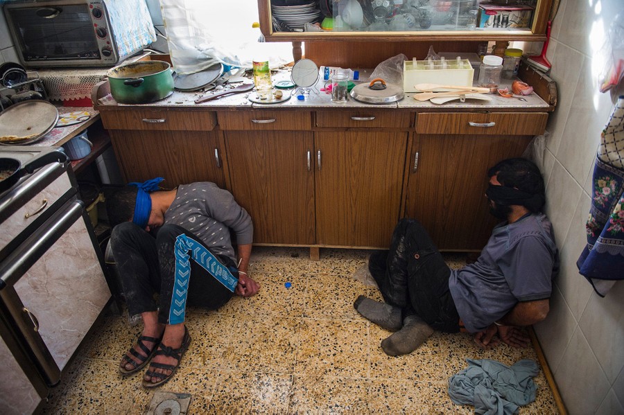 Read moreTwo suspected ISIS fighters found hiding in a house as they were pushing through the eastern Samah area and into the Arbagiah neighborhood of Mosul are seen on November 11, 2016 during an offensive by the Iraqi Special Forces 2nd division. #
