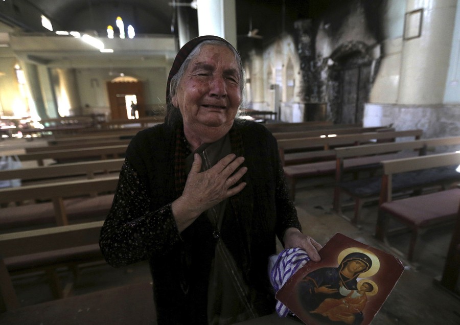 Read moreA Christian Iraqi woman cries after she saw the St. Addai church which was damaged by ISIS fighters during their occupation of Keramlis village, on November 13, 2016. #