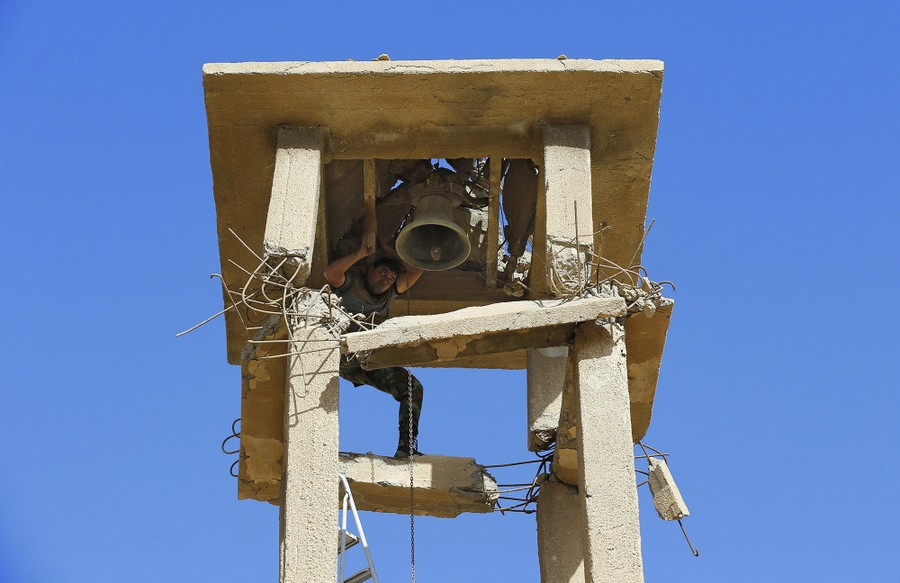 Read moreAn Iraqi Christian soldier from the Nineveh Plain Protection Unit fixes the bell of the St. Addai church, which was damaged by Islamic State fighters during their occupation of Keramlis village, less than 18 miles (29 kilometers) southeast of Mosul, Iraq, on November 13, 2016. There were gasps, and then tears, at the small church in northern Iraq as a group of Christians returned to their parish to find everything had been destroyed, including the statue of the Virgin Mary which ISIS militants decapitated before they left. The church bell tolled for the first time in more than two years, but few can summon up hope for the future. #