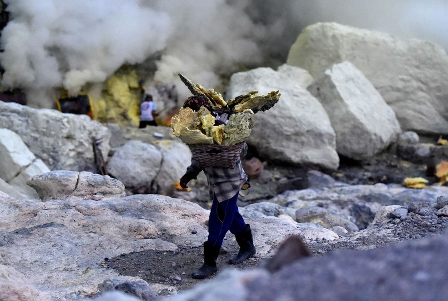 Read moreAn Indonesian miner carries baskets of solid sulphur from the quarry in Kawah Ijen, an active volcano in the remote Banyuwangi regency in East Java on June 15, 2016. By day, traditional miners brave the highly toxic gases to extract huge chunks of sulphur from the shores of a large turquoise lake within the crater. #