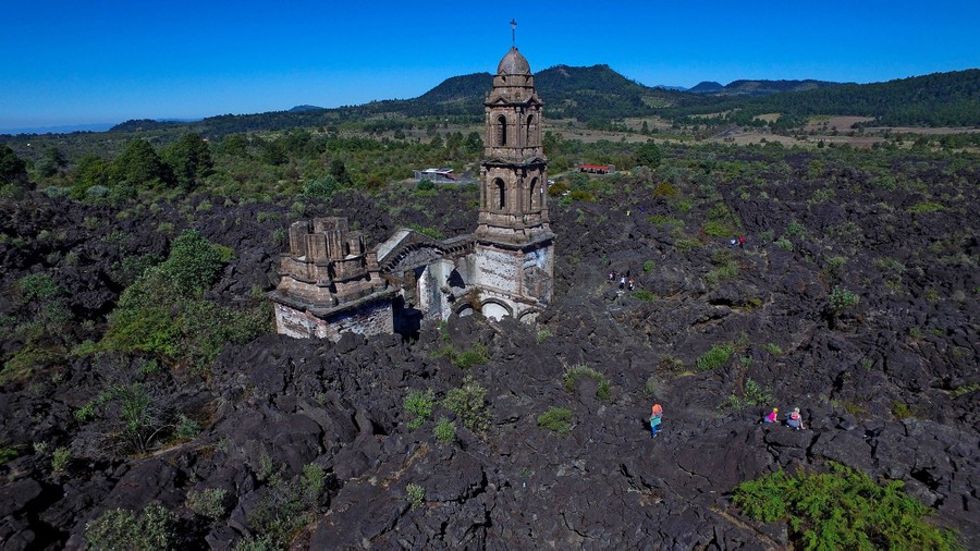 Read morePicture taken with a drone of the church of San Juan Parangaricutiru in Angahuan, Michoacan State, Mexico on January 17, 2016. The town of San Juan Parangaricutiru was destroyed in 1943 by an eruption of the Paricutin volcano. #