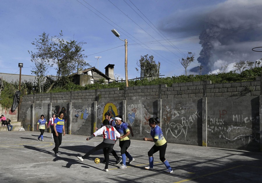 Read moreWomen play soccer as the Tungurahua volcano spews a column of ash during an eruption in Huambalo, Ecuador, on March 5, 2016. Tungurahua is 16,480 feet (5,023 meters) high and has been active since 1999. #