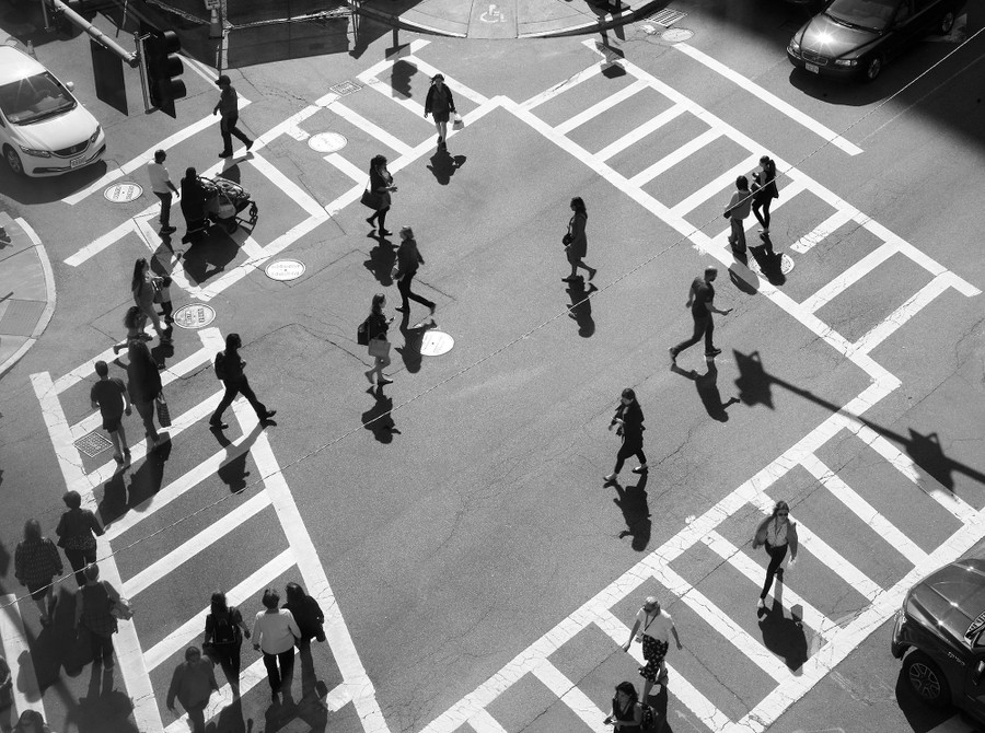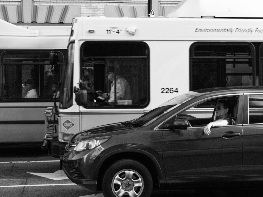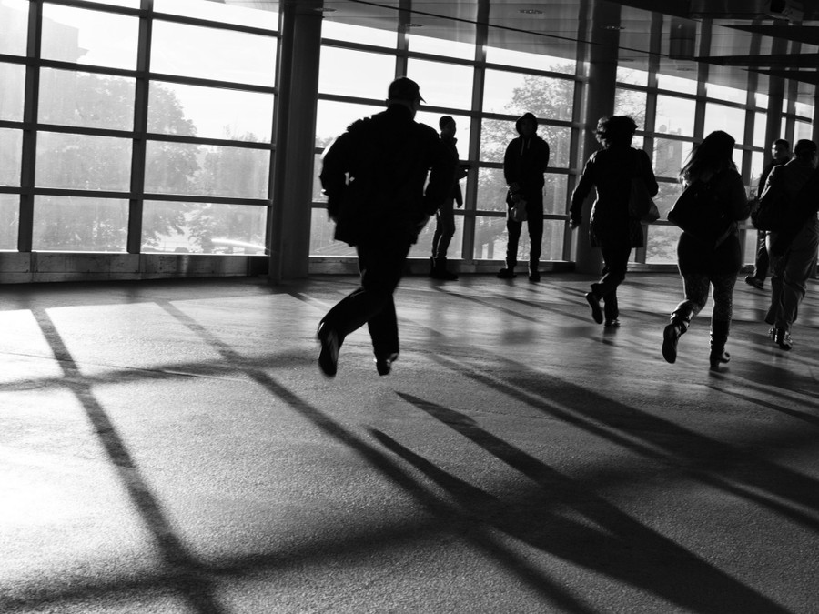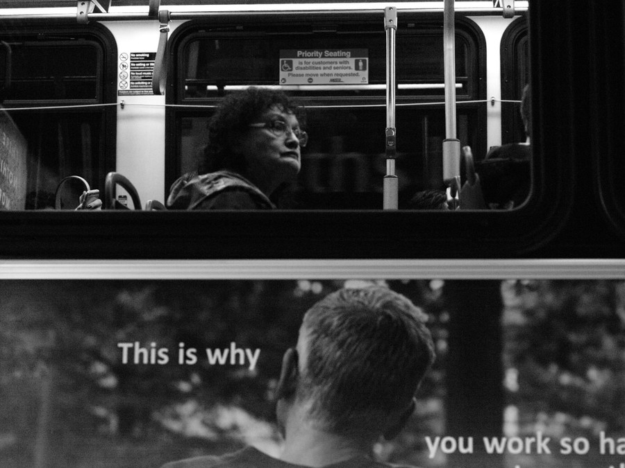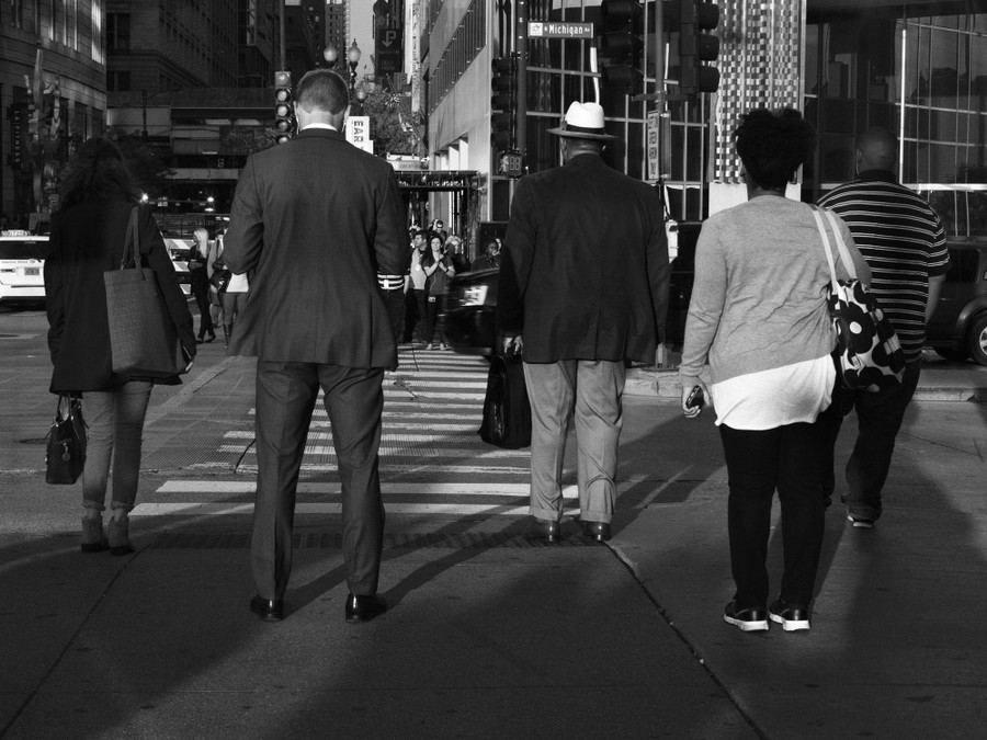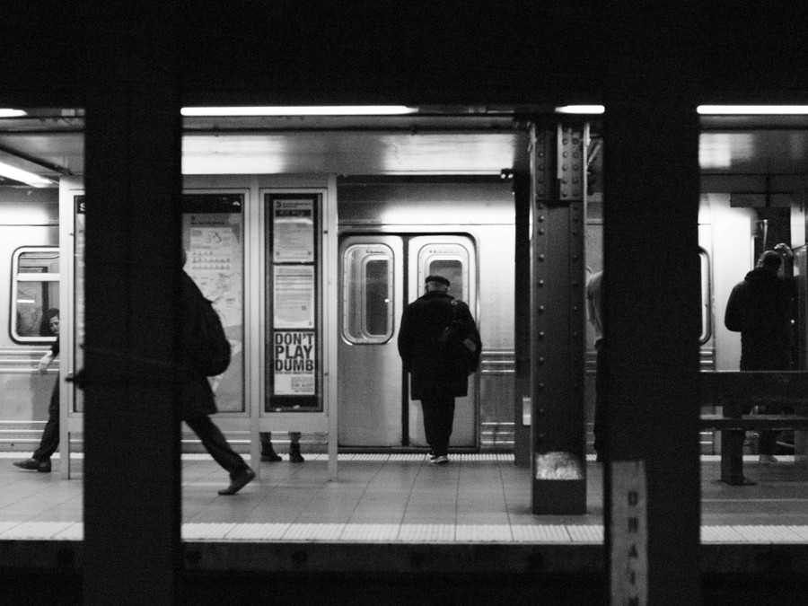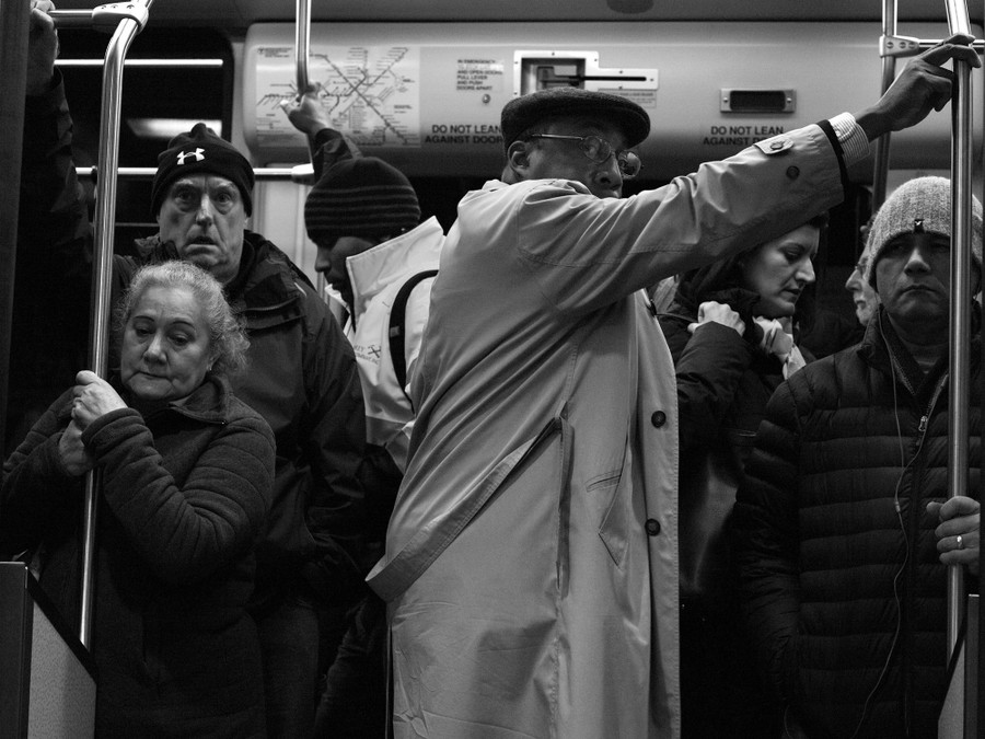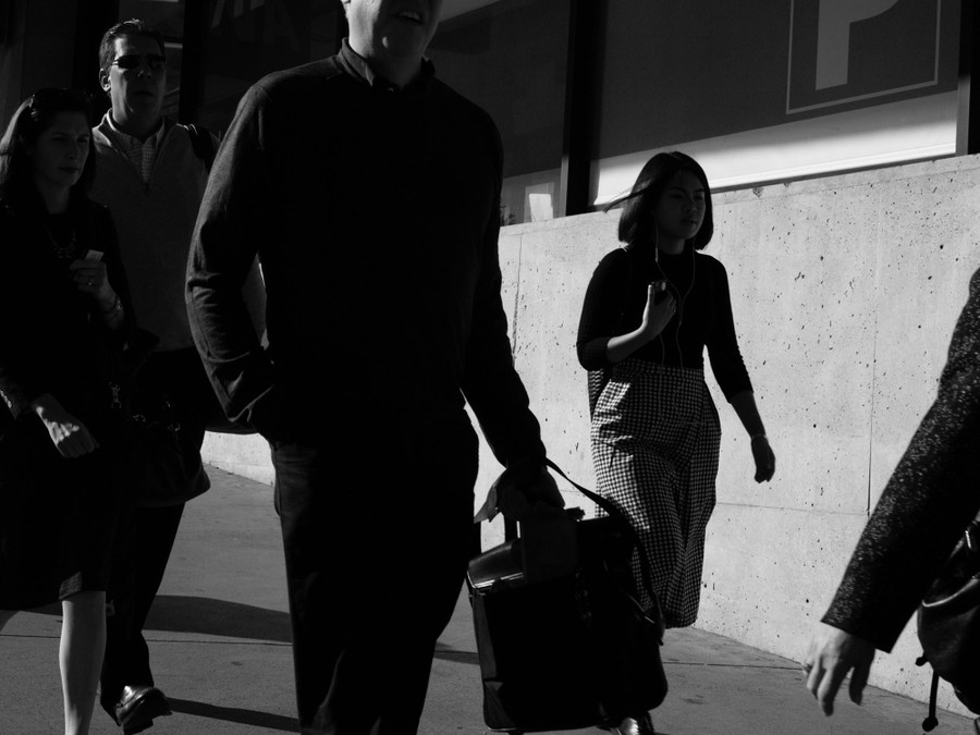 The city is my studio and the canvas in which I frame the landscape of the American mind. Much of that landscape is centered around how we work today. The buildings we work in, the trains we take, the roads we cross—all were created for how we work and what we work on in the cities. In this collection, the subjects are commuters who are caught between places of work in the early morning or late evening commute. In a world mastered by the digital and surreal, the subjects are photographed in the reality of city, and though their minds may be far away with the help of digital devices, they are documented as existing in that moment in time when the shutter closes. In observing commuters, it is interesting to notice how the social codes we all abide by have normalized in our daily life. For example, how to queue, or the appropriate distance from someone in a packed train.
