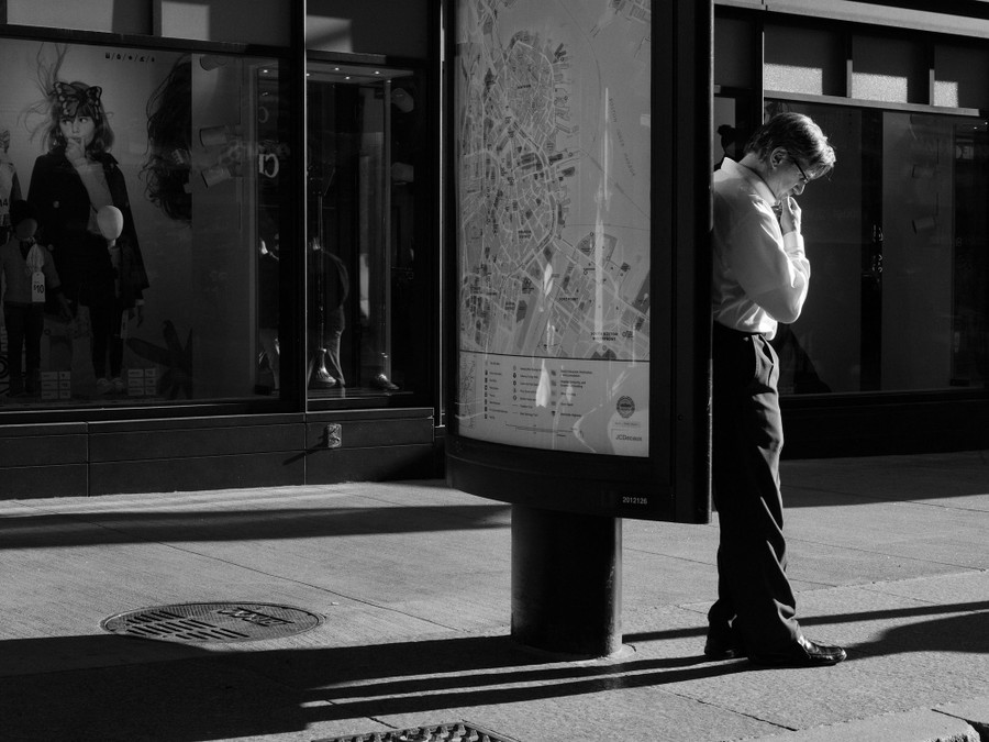 Another thing I found in photographing commuters, was the amount of advertisements, signage or symbols that suggest what to do, how to feel about the world, or what we should work hard for. Many of these messages probably go unnoticed now that we’re mostly looking down at our phones (which has its own barrage of messages), but I think subconsciously they guide our emotion during the day. I use these elements as well as shadow, light, contrast, and the geometry I find in the city to give context to my subjects. All the elements are meant not only to document, but to capture how it feels to live in our modern cities with all the emotion, and the humanity behind the everyday.