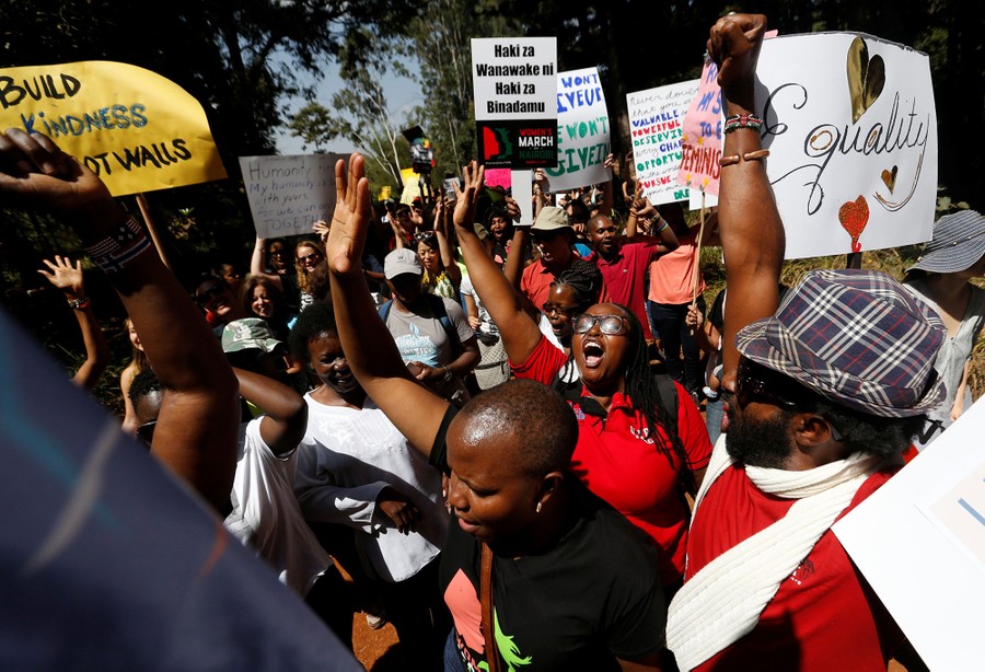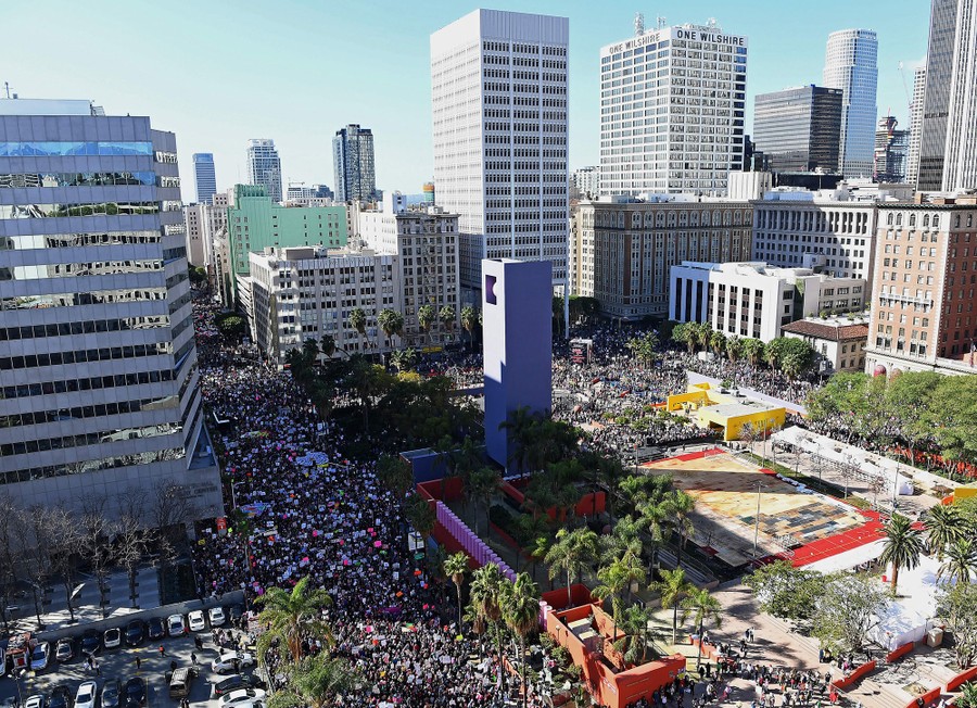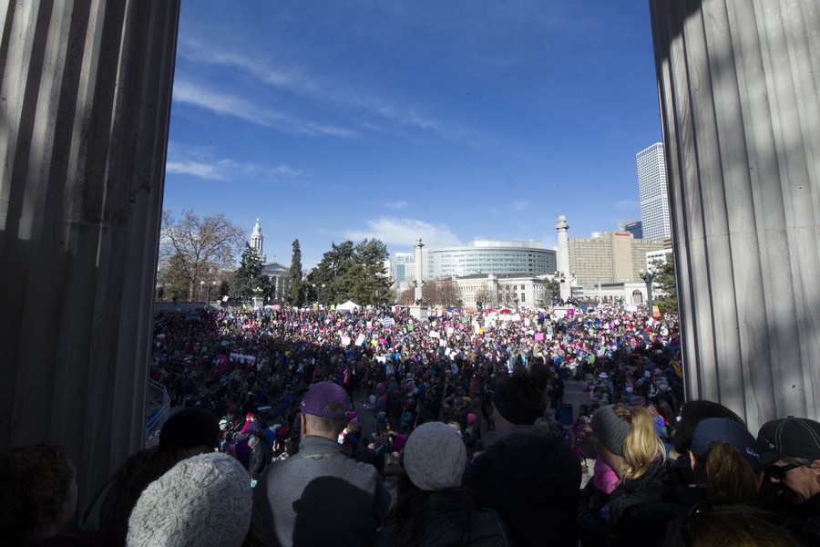 In Washington, DC, today, hundreds of thousands of protesters filled the streets in a demonstration called the Women’s March on DC, while even more marched in cities across the United States and around the world, one day after the inauguration of President Donald J. Trump. Larger-than-expected crowds of women and their allies raised their voices against the new administration, and in support of women's rights, health issues, equality, diversity and inclusion. Below are images of today’s marches in Washington, New York, Denver, Chicago, Boston, Los Angeles, Seattle, and from other cities in England, Ghana, France, Canada, Serbia, Australia, Kenya, Germany, India, and many more.