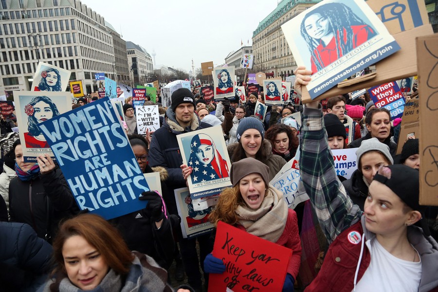 Read moreIn Berlin, Germany, people gather in front of the U.S. Embassy on Pariser Platz beside Brandenburg Gate in solidarity with women's march in Washington on January 21, 2017. #