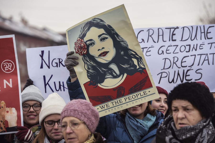 Read moreIn Pristina, Kosovo, women hold posters as they take part in a march for women's rights and freedom in solidarity with the march organised in Washington, on January 21, 2017. #