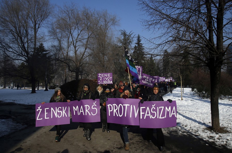 Read moreIn Belgrade, Serbia, activists hold a banner that reads "Women's March against Fascism" during the Women's March rally on January 21, 2017. The march was held in solidarity with the Women's March on Washington, advocating women's rights and opposing Donald Trump's presidency. #