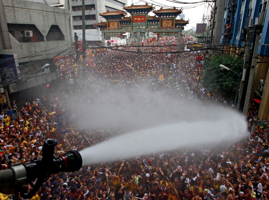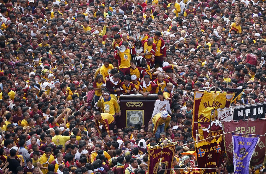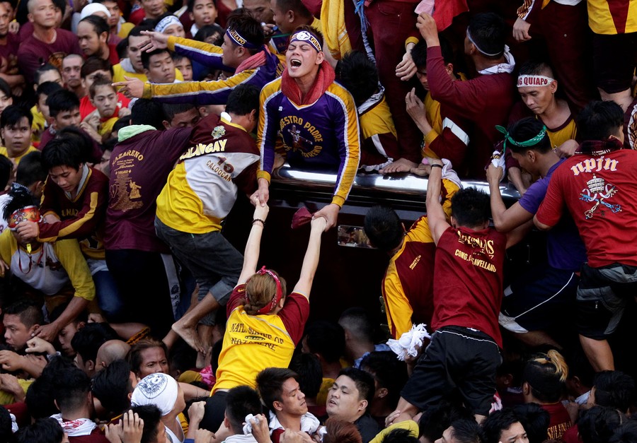 On January 9, hundreds of thousands of Catholic devotees in Manila, Philippines, took part in a barefoot procession lasting 22 hours, carrying a centuries-old icon of Jesus Christ through the streets as worshipers climbed over each other to kiss, touch, or rub bits of cloth on the statue. The Black Nazarene is an ebony statue of Jesus Christ brought to the Philippines in 1606, and is believed to have miraculous powers. Organizers said that events related to the annual festival were expected to draw about 15 million people to Manila this year.