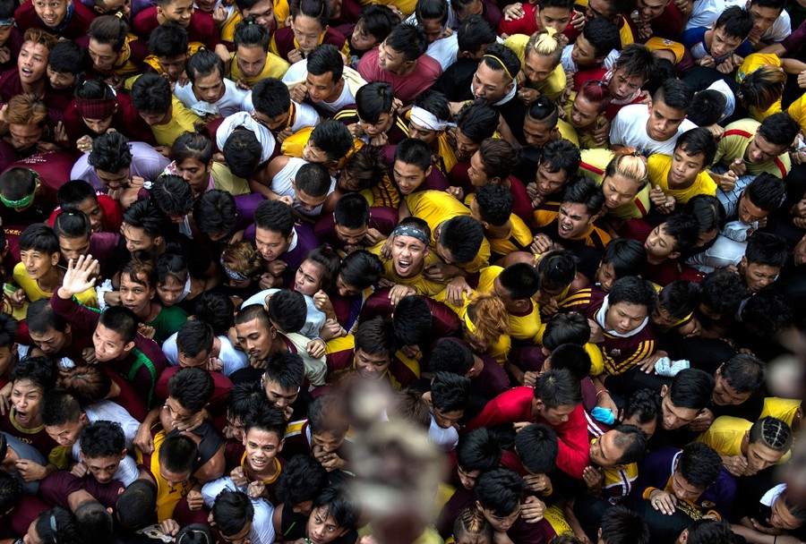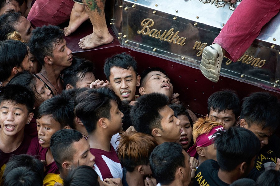 Read moreFilipino devotees jostle each other as they join the procession in honor of the statue of the Black Nazarene during the annual religious procession on January 9, 2017. #
