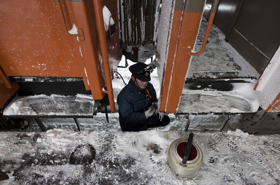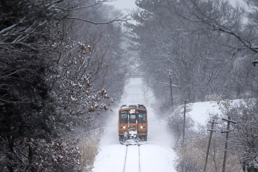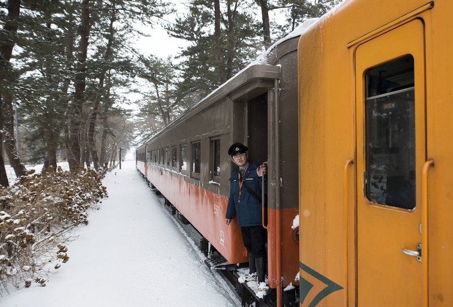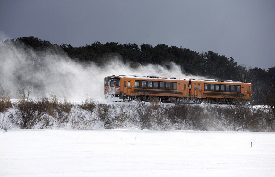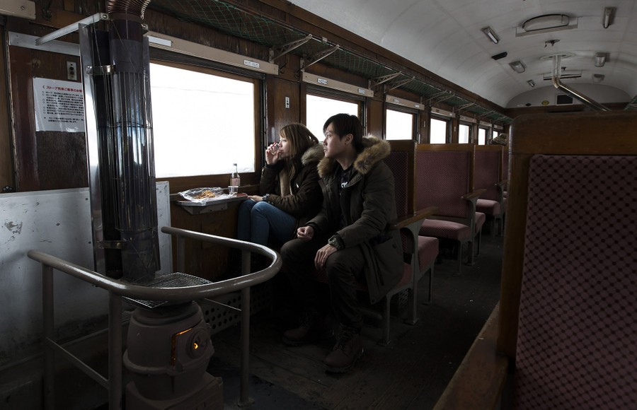 In northern Japan, the Tsugaru Railway operates between Tsugaru Goshogawara and Tsugaru Nakazato stations, about 12 miles apart, or a 45 minute ride through a quiet rural landscape. In the winter, the company operates a train with an old-fashioned potbelly stove to heat the passenger cars, to attract tourists from the outside of the prefecture as the number of passengers declines due to the motorization and declining population in the region. Getty Images photographer Tomohiro Ohsumi recently took the trip, photographing the cozy ride on a chilly February day.