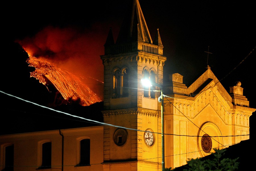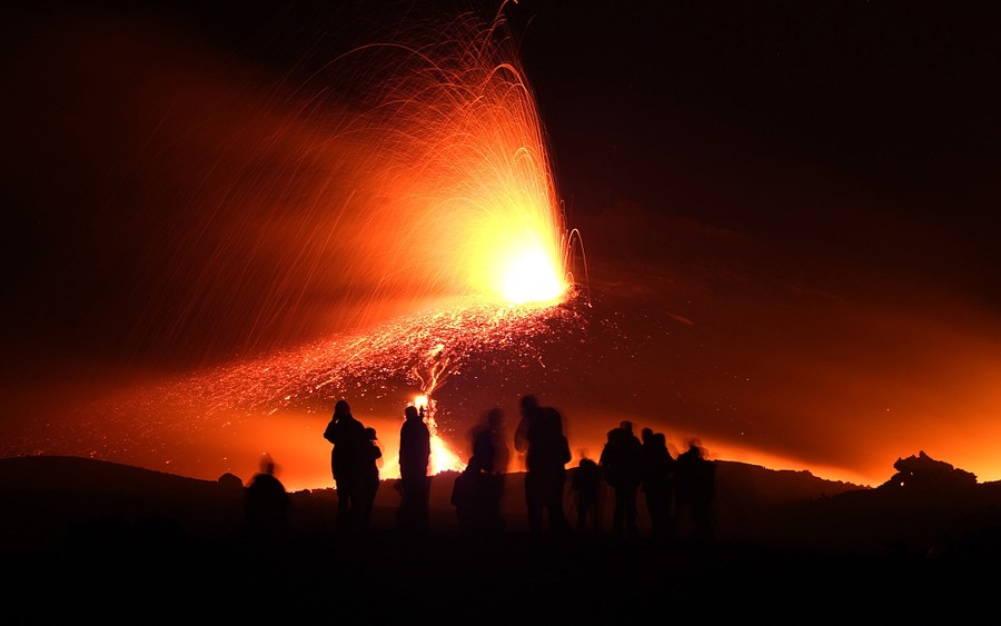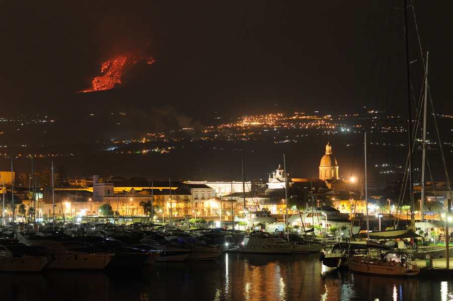 Mount Etna, on the Italian island of Sicily, is not only the highest active volcano in Europe at 10,810 feet (3,295 meters), but is one of the most active in the world. Historical observations of Etna’s eruptions go back as far as 3,500 years, with geological observations reaching back hundreds of thousands of years. While recent eruptions have rarely caused serious damage to the farms or villages in the shadow of the volcano, locals remain alert to any activity.