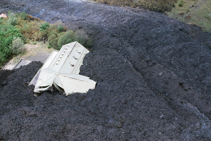 Read moreMount Etna spews out fresh lava on July 26, 2001 in the latest and most spectacular phase of an eruption, leading the government to declare a state of emergency in the area. The lava flow reached a car park 10 meters away from the Sapienza refuge, a popular tourist spot offering shelter from bad weather, after bulldozers piled up earth and hardened lava from earlier eruptions into barricades. #
