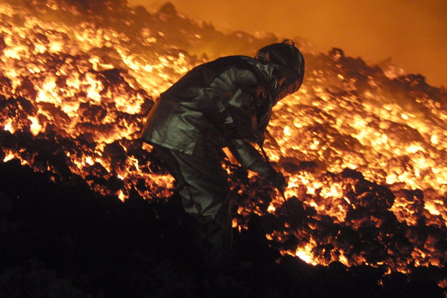 Read moreAn excavator is used to attempt to divert a stream of lava erupting from Mount Etna after it reached a parking lot near the Sapienza Rifugio, at Nicolosi, Sicily, on July 26, 2001. #