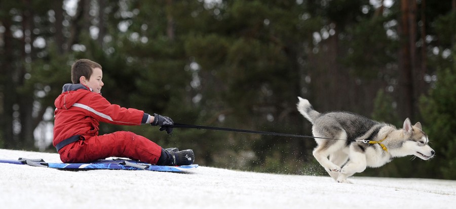 Read moreMarco Ezzi is towed on his sled by a husky puppy as preparations are made for the 29th annual Aviemore Husky Sled Dog Rally beside Loch Morlich, Aviemore, Scotland, on January 19, 2012. #