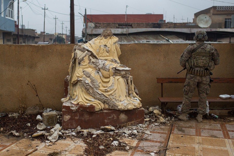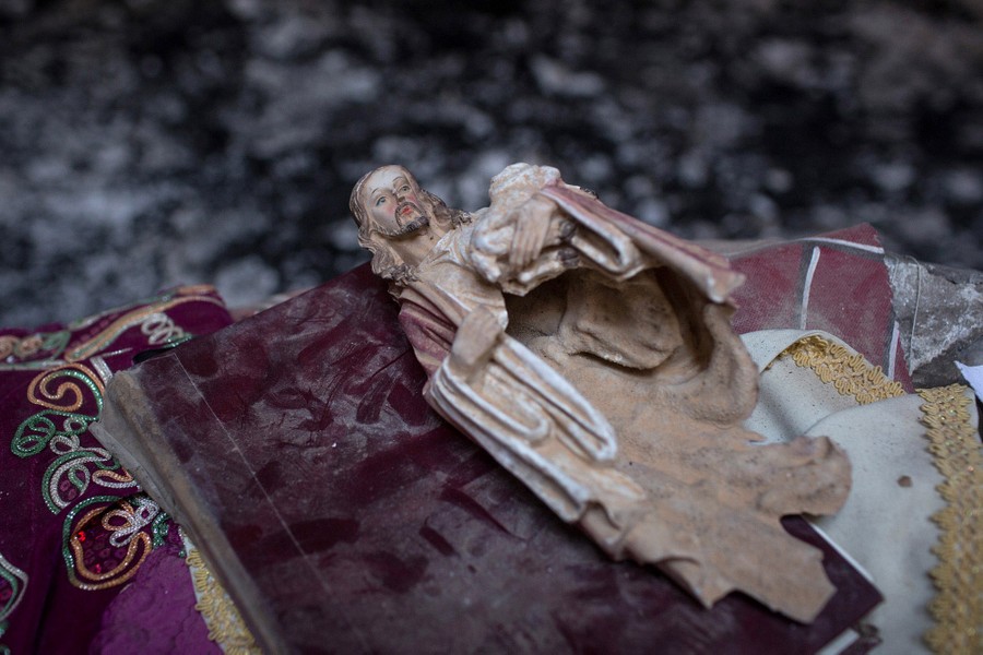 Read moreA smashed statue of Jesus Christ sits on the altar of a church burned and destroyed by ISIS during their occupation of the predominantly Christian town of Qaraqosh on December 27, 2016. #
